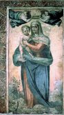 Pietro Antonio Ferro, Madonna con Bambino incoronata da due angeli, affresco, 1611,  Cappella del Crocifisso,  parete nord, a sinistra.