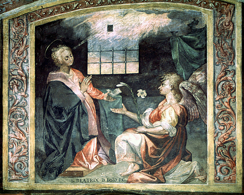 Pietro Antonio Ferro, Annunciazione, affresco, 1611, Cappella del Crocifisso, parete nord.