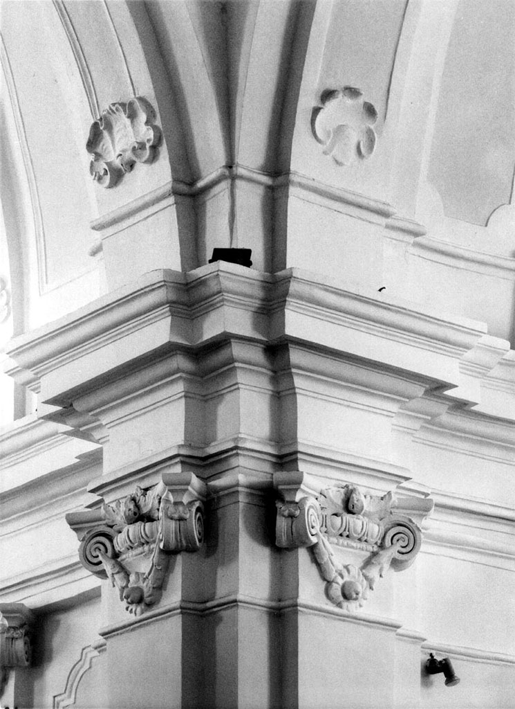 La cupola, posta all'incrocio del transetto con la navata centrale, ha la figura geometrica di base ed ornata di stucchi rococò.