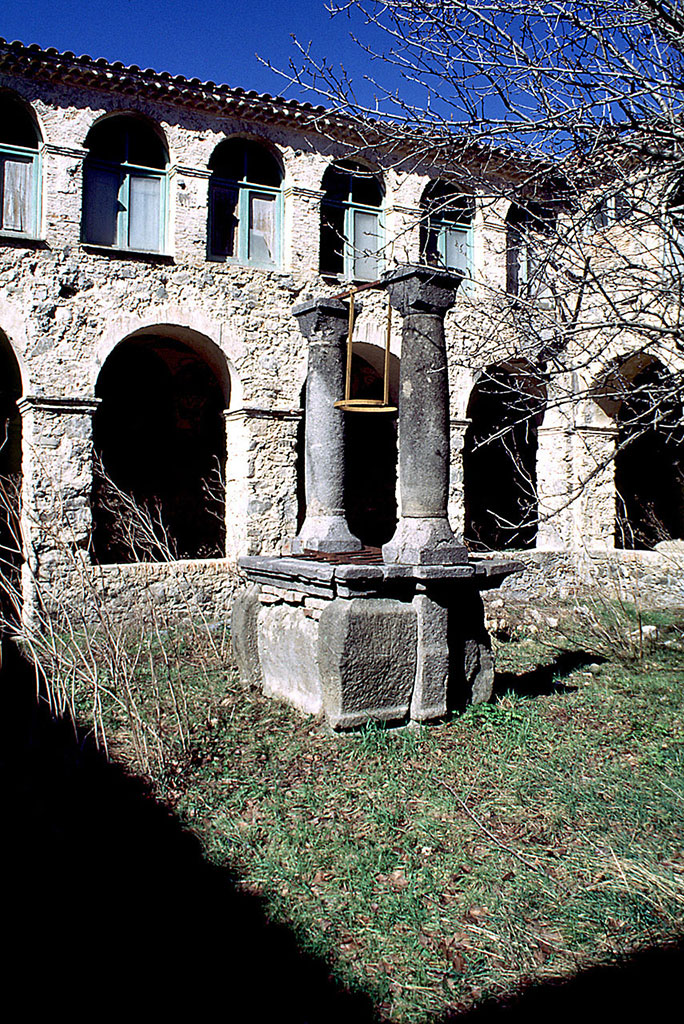 Il chiostro è stato ricostruito e ampliato dai francescani Osservanti dopo il loro insediamento avvenuto nel 1587. Essi ebbero anche l'autorizzazione dalla Santa Sede a restaurare ed ampliare il convento, appartenuto in passato alla congregazione Benedettina femminile di Pulsano (Taranto), fondata da Giovanni da Matera (1070-1139) e divenuto uno dei centri dell'economia calvellese tra il 1145 e il 1177.