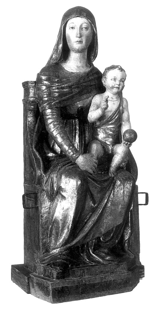 Ignoto, Madonna in trono con Bambino, scultura lignea e dipinta, XVI secolo.