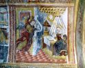 Questo affresco fa parte del ciclo che illustra alcuni episodi della Vita di Maria e lascia trasparire "una cultura figurativa aggiornata che media il gusto narrativo e naturalistico del tardo gotico con la conquista della prospettiva e l'immersione della scena in una luce calda e soffusa" (Settembrino).