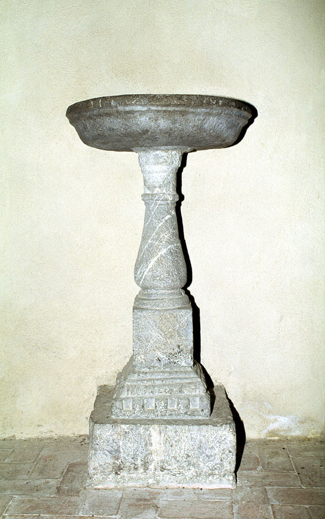Acquasantiera, scultura lapidea, seconda metà del XVI secolo.