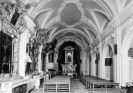 L'interno si presenta a due navate: la principale, lunga m. 32x7, ha una volta a botte lunettata più alta di quella laterale, la quale misura m. 19x5 e ha la volta a crociera. La prima, coi suoi stucchi e cornici, si contrappone alla seconda, sobria nella decorazione.